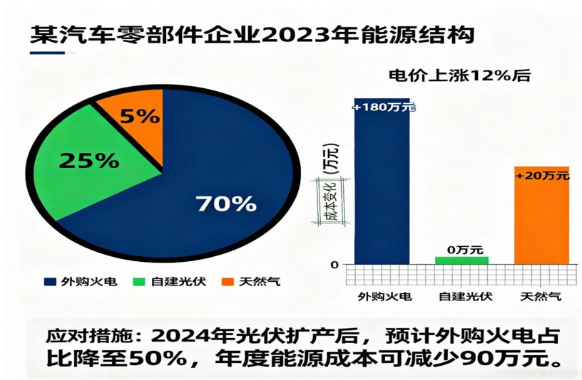 ——财务影响:强制披露“能源价格波动对生产成本的影响”,并说明应对措施(如“2023年工业电价同比上涨12%,新增成本150万元;计划2024年将自建光伏规模扩至10MW,预计年减少电费支出80万元”)。