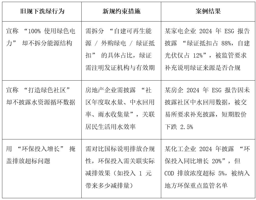 【常见洗绿行为与新规约束对比表】