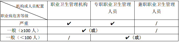 9、根据《建设项目职业病危害风险分类管理目录》,确定用人单位职业病危害风险等级,根据职业病危害风险等级,检查用人单位职业卫生管理组织机构及专兼职管理人员配备情况。