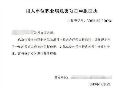 12、检查用人单位是否及时进行职业病危害项目申报(一般是每年进行一次申报),查看用人单位《职业病危害项目申报回执》。