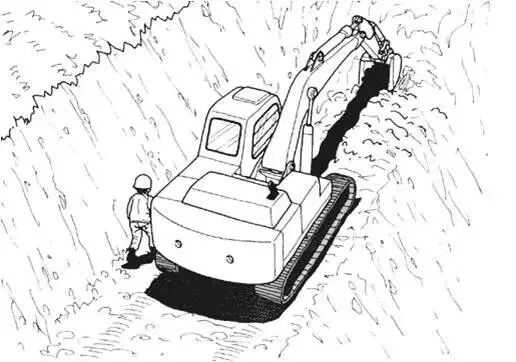 (3) 在狭窄的现场不要进行液压挖掘机的急回转操作。
