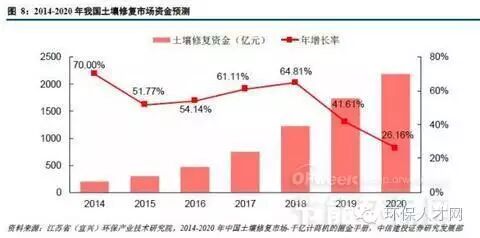 今年全国“两会”期间,环保部部长陈吉宁透露,《土壤环境保护和污染治理行动计划》(俗称“土十条”)文稿已经基本成熟,将按程序报批后实施,我们预计年中的时候就会出台。虽然环保部一直强调要打好“水、气、土”污染防治三大战役,但相对于大气和水,土壤污染防治起步较晚,政策也相对薄弱。作为土壤管理和综合防治的一个重要规划,“土十条”的发布将正式揭开土壤污染防治工作大幕,土壤修复市场将保持较高速度增长,预计到2020年达到2000亿/年的市场规模,年均复合增长率达到49%。