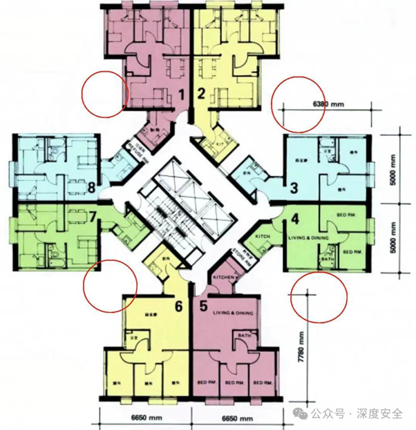 ·结构诱因:每单元 8 户的核心筒构造形成竖向凹槽(0.8-1.2 米宽、30° 倾角),三面围合的设计天然构成 “倾斜沟槽”,完美契合壕沟效应的临界条件。