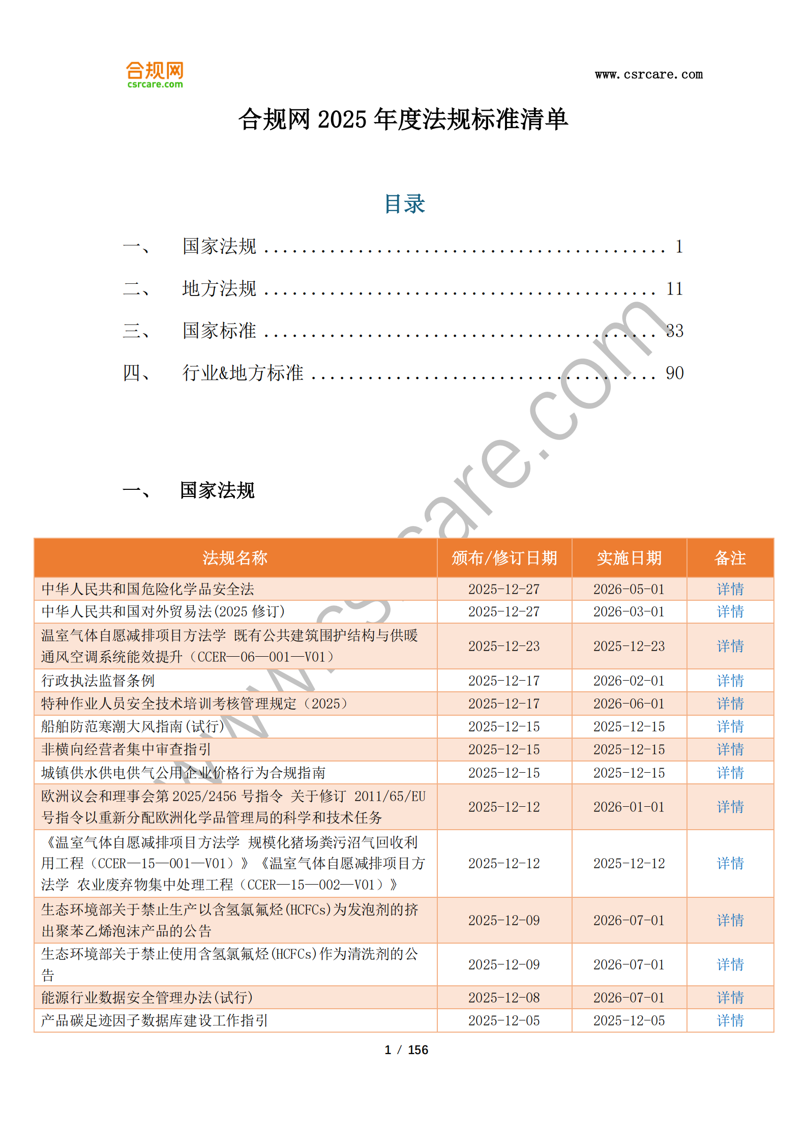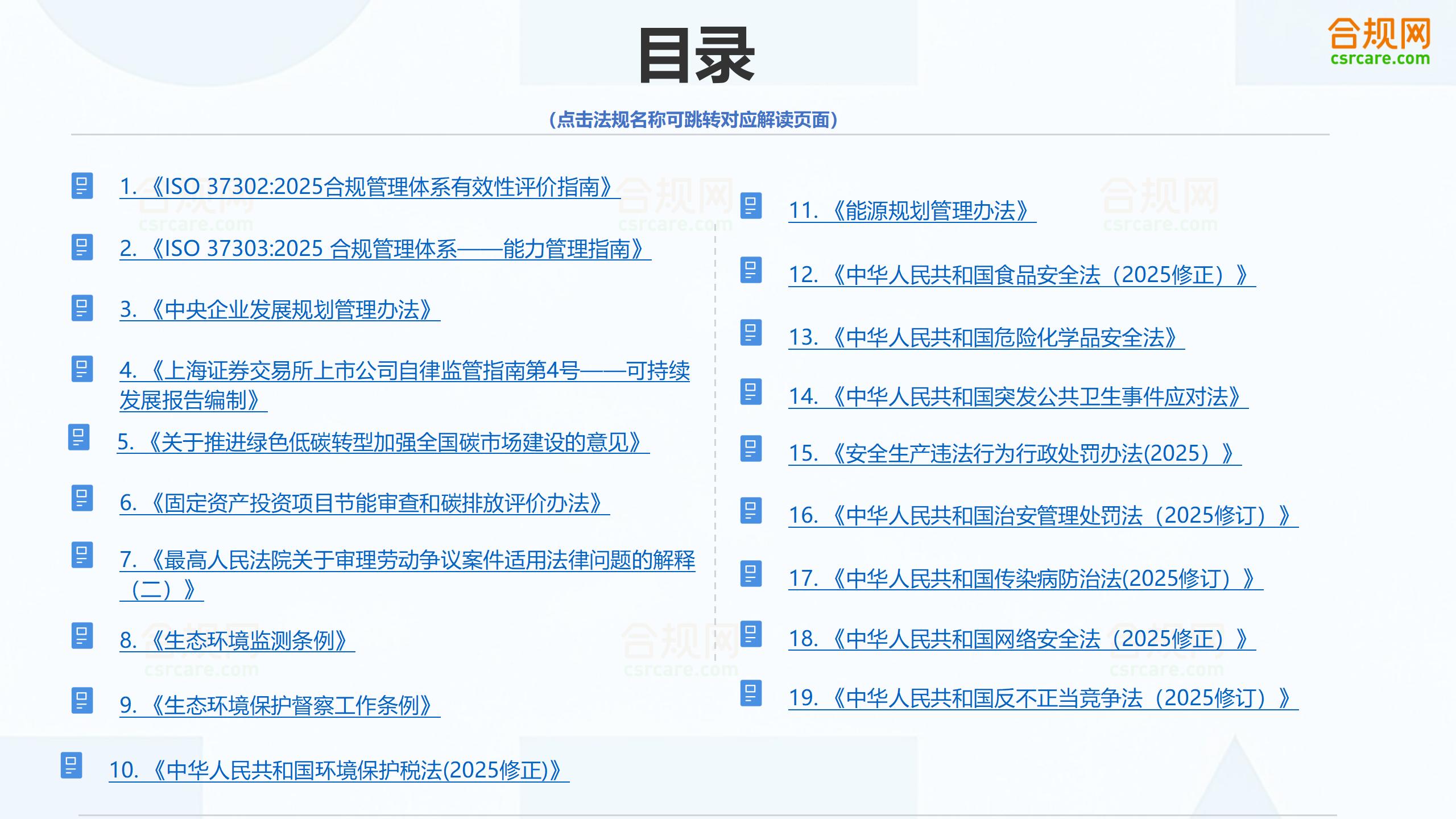 合规网2025年度法规标准清单