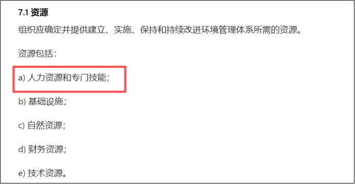 (1)新增强制要求,必须为气候变化应对、生物多样性保护、循环经济转型、环境正义相关工作,配置拥有专业技能的人员、资金、技术、专业能力资源等,不像以前的2015版只有笼统地写“资源”。