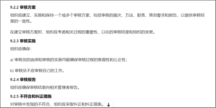 细化了内审管理要求,包括上述几点都是细化后的要求,比如“审核员不应审核自己的工作”,这在以前的标准是没有提及,但我们在审核过程中是遵循这样的要求。