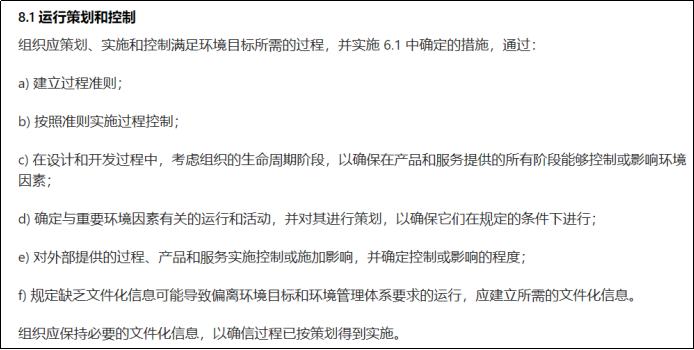 (1)要求必须建议全生命周期进行管控,包括供应链、外包过程全过程的环境影响都要进行管控。