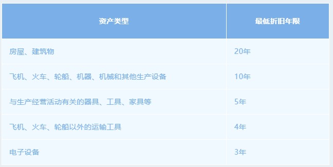 1、会计折旧年限<税法最低年限:超额部分全额调增
